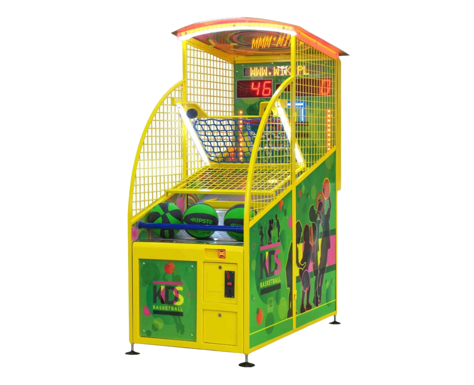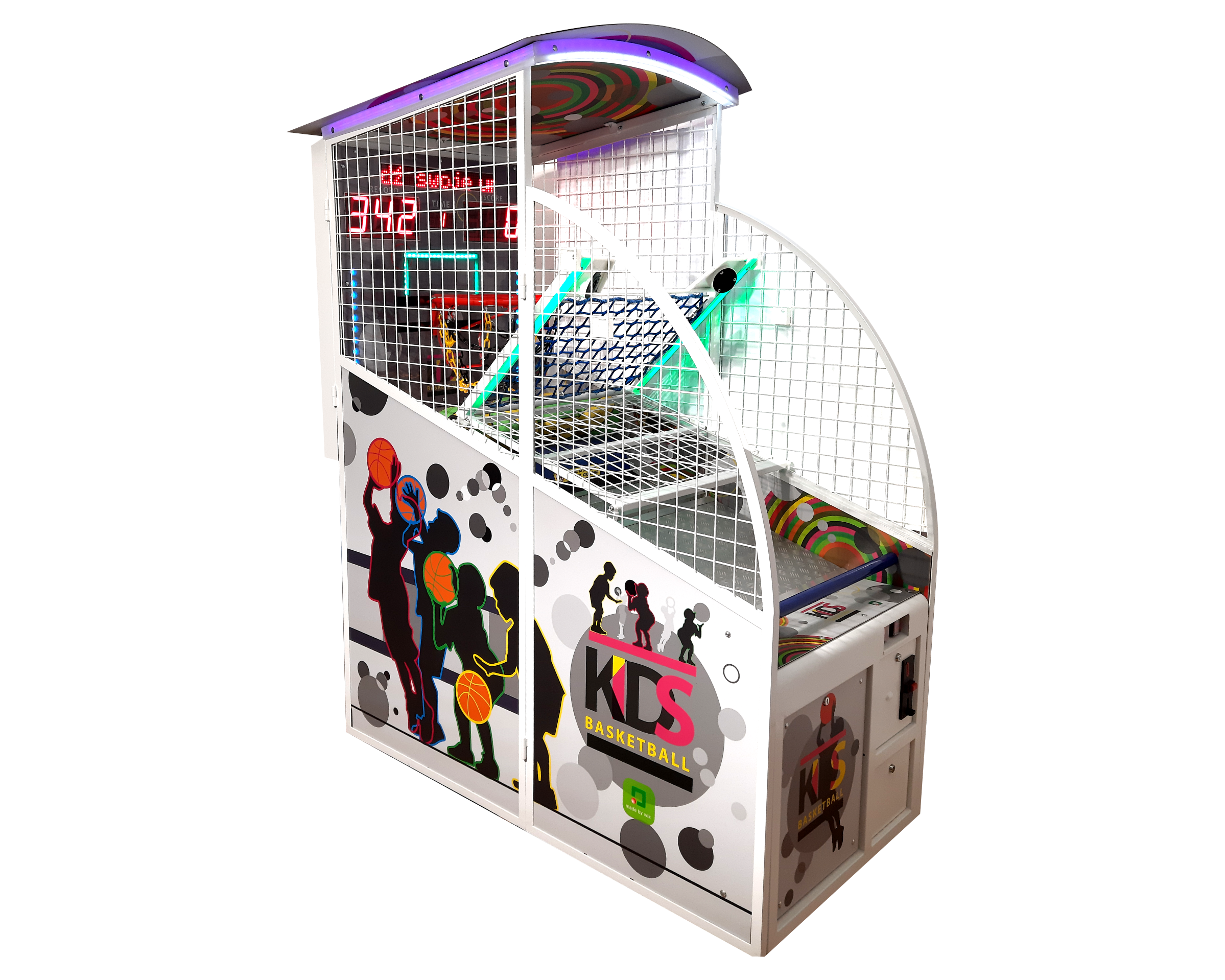 Kids Basketball to kultowa maszyna do koszykówki stworzona z myślą o dzieciach. Zaprojektowana jest w kolorowy sposób, jest mniejsza i dostosowana do małych rączek.